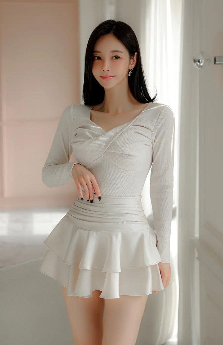 奶白柔纱裙